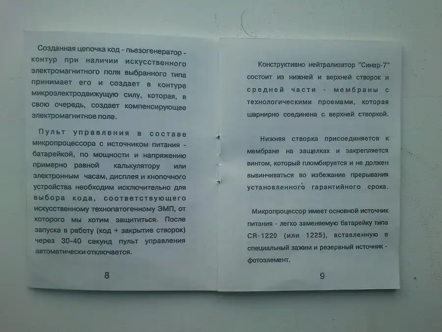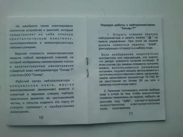 Разгребая рабочий хлам попался на глаза довольно таки интересный девайс под названием Нейтрализатор магнитных полей Синар - 7. К комлекту прилагалась подробная инструкция. Так как устройство при нажатии на кнопки не подавало жизни, то было решено его припарировать.