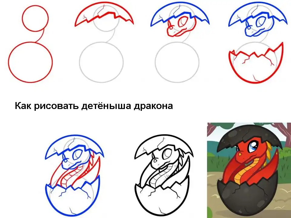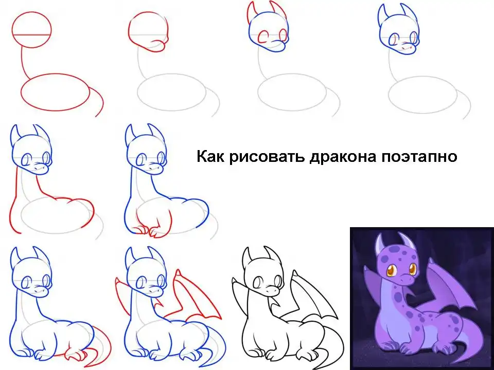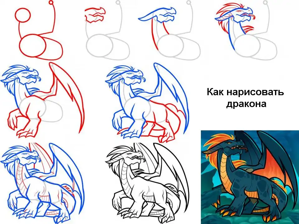 Впрочем, цель данной статьи не рассказ о драконах, а цель – научить вас рисовать дракона, используя простые пошаговые инструкции. Сразу скажу, что нарисовать реалистичного дракона очень непросто. Придётся «попотеть». Но если вы не стремитесь получить злобного монстра, а хотите нарисовать дракона симпатичного, дракона – малыша, то здесь есть и такие инструкции.