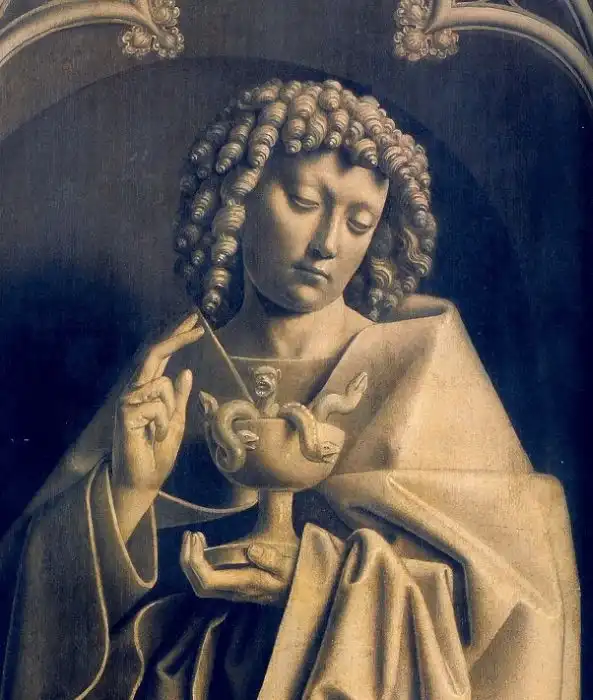 Защищаясь от ненужных вопросов, Церковь даже придумала историю о попытке отравить Иоанна Богослова, потому, дескать, он и держит в руках чашу с Василиском. Но стоит вспомнить, что яд равен лекарству, а Змей это символ исцеления, и тождество чаши Гиппократа и чаши Иоанна Богослова становится естественным.