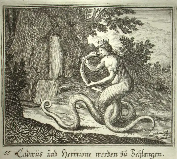 Но главная, пожалуй, из них – Гермиона, она же Гармония, и ее супруг греческий царь Кадм, обратившийся в змея.