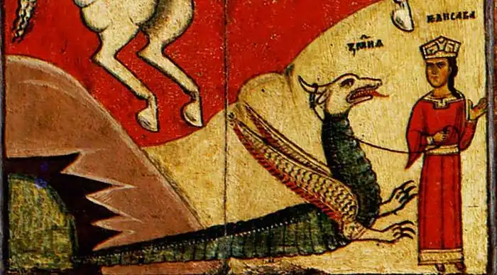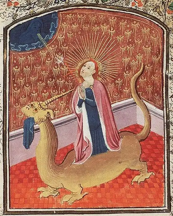 Это не исключение. Многие Василиски рогаты, точнее единороги. Вот св. Маргарет Антиохийская — со своим.