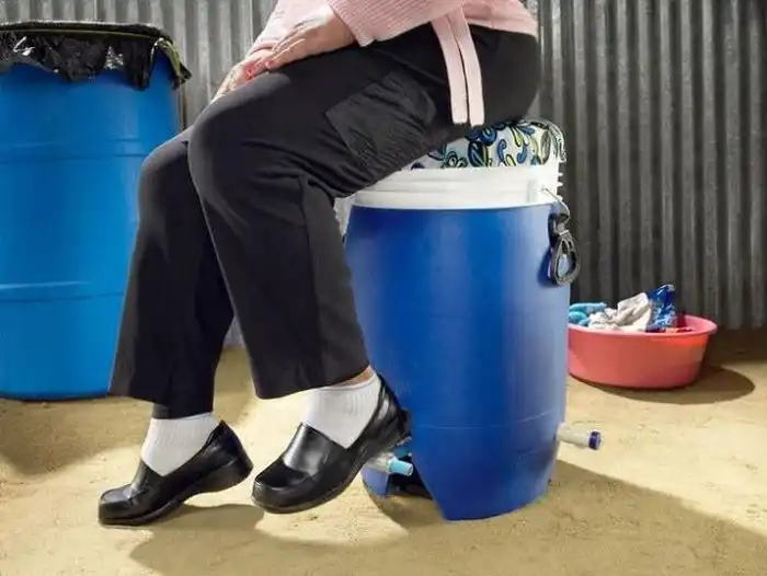 Не хватает денег для покупки полноценной стиральной машины? Не беда! В некоторых странах с бедным населением можно купить вот такой девайс. Эта стиральная машина работает без электричества, барабан приводится в движением ножным приводом.