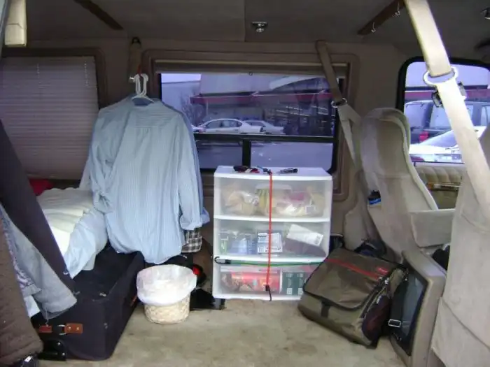Постепенно Кен стал заниматься обустройством своего фургона. «Со временем он превратился в подобие студенческой комнаты в общежитии, только маленькой» — говорит Кен. Он снял задние сиденья, тем самым освободив достаточно места для размещения в фургоне своей «мебели». Для хранения еды и учебных принадлежностей он использовал пластиковый контейнер.