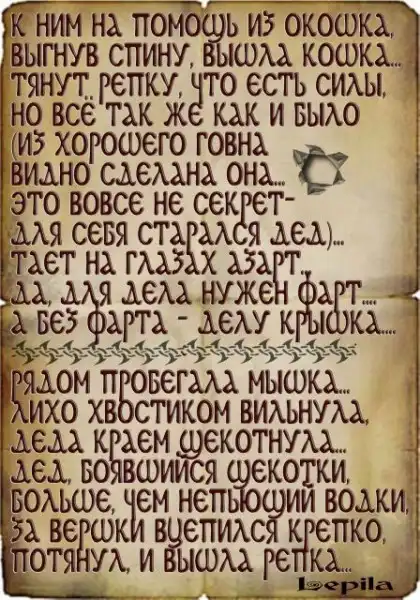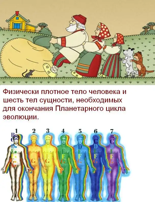А вот астральный смысл сказа репки. Он имел значение выхода души (сущности), на новый уровень эволюционного развития. Образ "вырывания Репки из Земли", как раз таки и означает процесс выхода на принципиально новый уровень развития, а значит и влияния. А дальше в сказке написано - "какие должны быть соблюдены условия", при которых живое существо способно выйти на принципиально новый уровень эволюционного развития. Условно говоря - закончить Планетарный этап развития и начать Галактический. Вырасти из "коротких Земных штанишек" и развиваться дальше. А условия эти просты. Нужно "всего лишь" "наработать" 6 тел души (сущности). В сказке условно обозначенных как: Дед, Бабка, Внучка, Жучка, Кошка, Мышка.