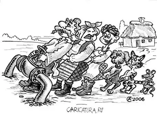 Вот еще одна из старых интерпретаций сказки про репку, там существовали еще два персонажа: Отец и Мать. Предполагается, что их убрали из сказки, из-за семеричной системы восприятия мира, в отличие от девятеричной, некогда существовавшей древнеславянской системы.
