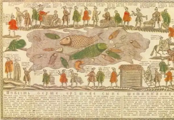 Повесть о Ерше Ершовиче. Раскрашенная гравюра на меди. Середина XIX в.