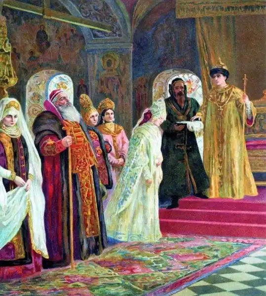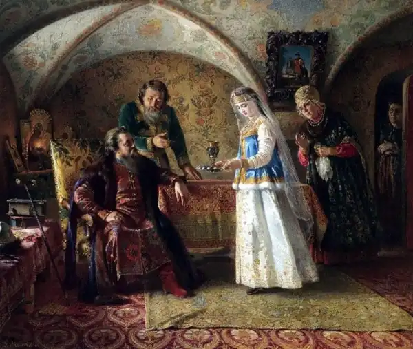 Под венец. 1889. Холст, масло. Серпуховской историко-художественный музей.