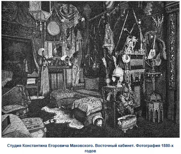 К.Е. Маковский унаследовал собирательскую увлечённость отца, однако в его коллекционировании преобладали иные интересы. По определению сына живописца, известного художественного критика Сергея Маковского, - это была "красивая старина", которую, по его мнению, отец "безостановочно покупал... со вкусом знатока, но без особого разбора - и нужное, и ненужное, и то, что могло пригодиться как аксессуар для исторической картины, и то, что просто "понравилось" своим изяществом, своеобразием или вычурой, и что можно было куда-нибудь пристроить в жилых комнатах и мастерских".