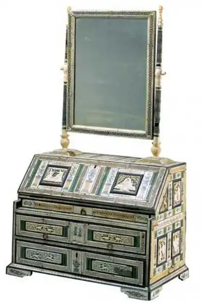 Туалет. Россия, Холмогоры. Конец XVIII века. Дуб, кость мамонта, резьба, раскраска. Из коллекции Константина Егоровича Маковского. Российский Этнографический музей. С.- Петербург.