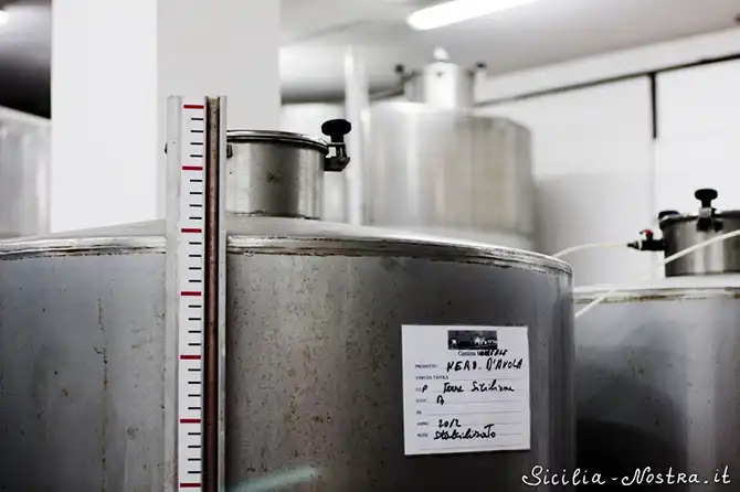 Особенность этой фабрики в том, что вся их продукция – «биологическая», как и продукция фабрики Baglio Caruana, на которую мы устраиваем экскурсии с дегустацией. То есть и в выращивании и в производстве не используется никаких химикатов. Ни удобрений, ни консервантов. Даже этикетки на бутылках – и те из переработанной бумаги. Всё используемое сырьё – с собственных виноградников и оливковых рощ, находящихся на холмах, окружающих это очень уютное семейное производство в районе Сикулианы.