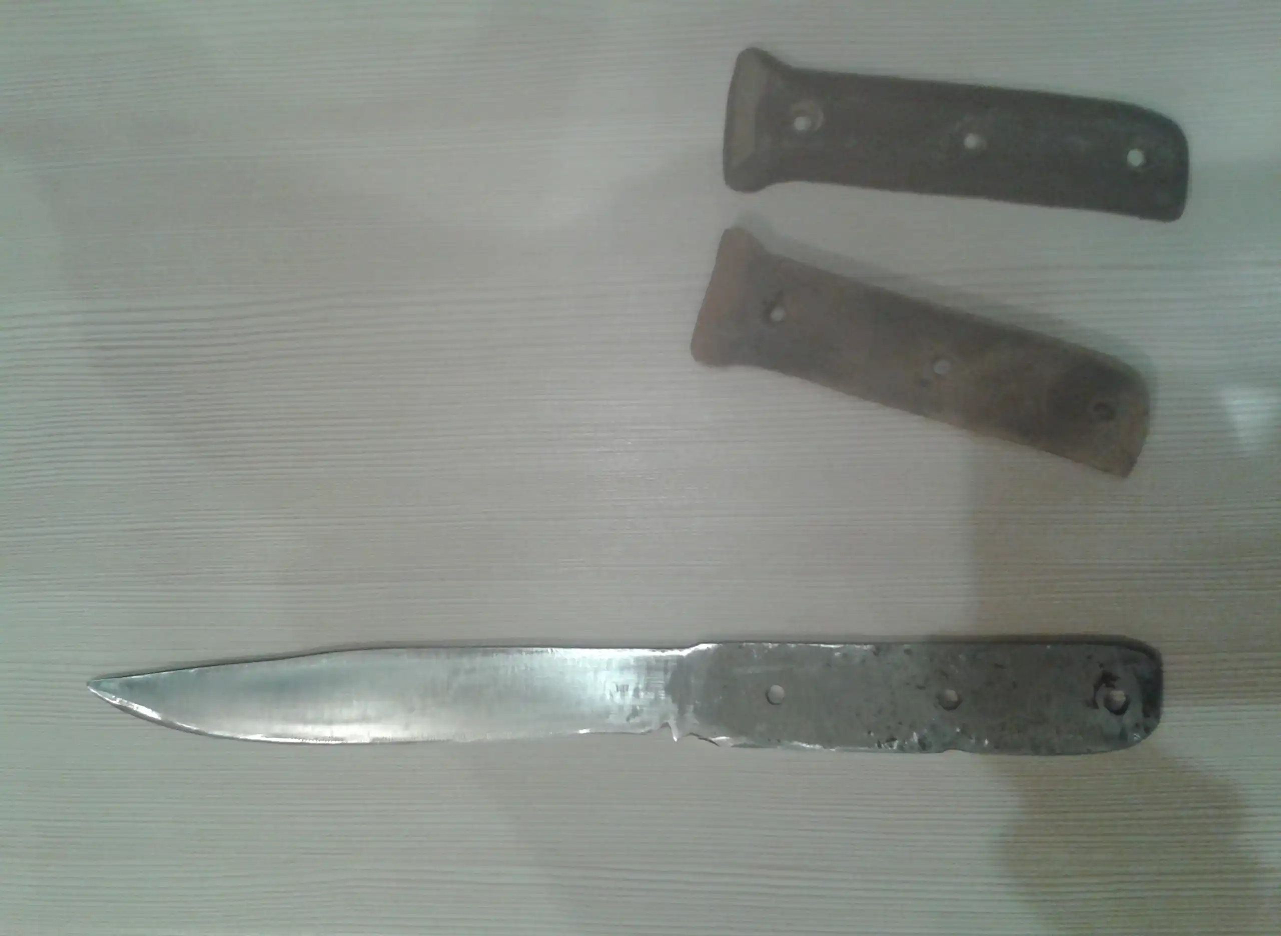 Вот начальный вид ножа, который сделал еще мой дед. Нож делался как маленький топорик на кухне и о внешнем виде никто не думал. Уже маленько начат процесс преобразования.