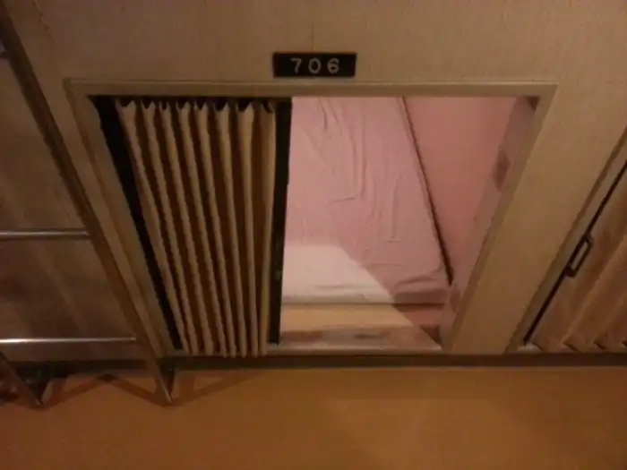 Так выглядел "ресепшн". На стойке регистрации никого не было, да и стойки регистрации не было как таковой. Оплатить "номер" можно только через автомат, который при этом принимал только наличные. Кругом всё было как-то тускло и серо. Не так представлялся американцу японский капсульный отель. Парню досталась капсула под номером 706.