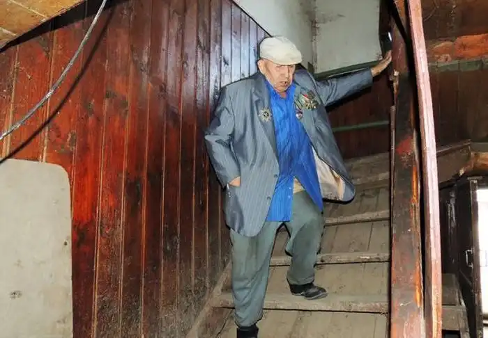 Асгат-бабай говорит тихим голосом, путано и часто повторяя «дорес эйткэндэ» («честно говоря» на татарском — прим. автора). У него светло-голубые глаза. Видимо, мужчина привык к вниманию, гостей всех рангов и званий принимает в домашней одежде. Лишь изредка вытаскивает из шкафа и надевает пиджак с медалями и чуть ли не единственную синюю рубашку.