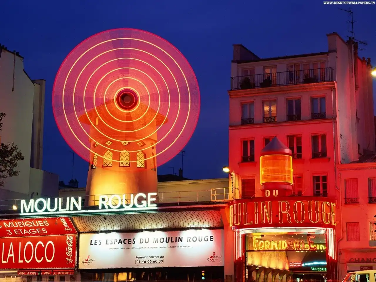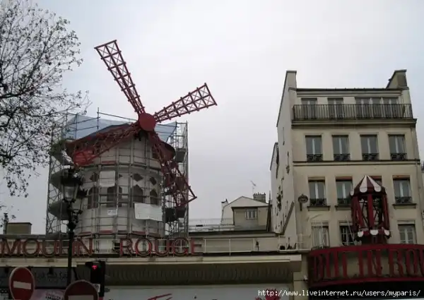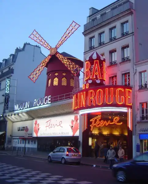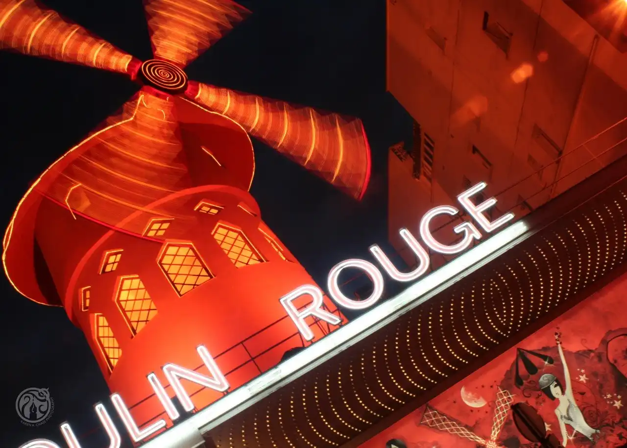 Самый высокий холм Парижа — Монмартр. До середины XIX века он был известен своими виноградниками и мельницами. Ныне на Монмартре осталась только одна, но зато самая узнаваемая — Красная мельница, в переводе — «Мулен Руж», известное на весь мир кабаре с феерическим танцевальным шоу и конечно знаменитым традиционным французским канканом.Французы говорят: » Кто был в Париже и не посетил Мулен Руж, тот не сможет до конца понять, что же такое Париж». Ведь Мулен Руж — это тоже часть истории Парижа, это больше чем мелодраматическая история, рассказанная в одноименном фильме, это — символ. Символ сбывшихся и несбывшихся надежд, разбитых и соединившихся сердец, творчества и порока, красоты и безобразия.