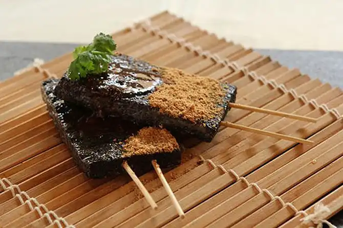 Это тайванский деликатес, состоящий из риса и крови свиньи на палочке. И хотя вряд ли американский хот-дог является более полезной пищей, чем это блюдо, всё же торт из свиной крови запрещён в США, т.к. считается антисанитарным.