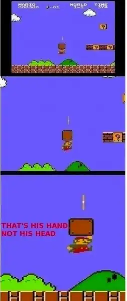 35. Марио разбивает блоки рукой, а не головой.