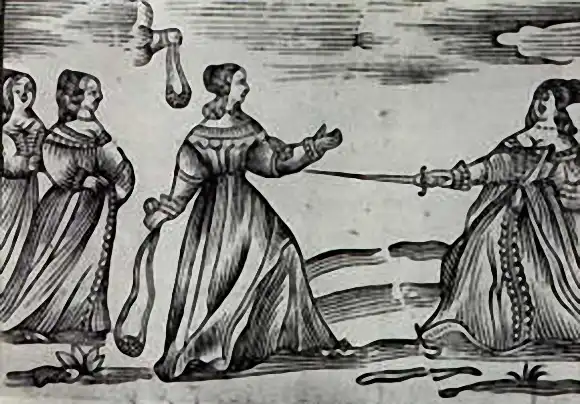 Пик моды на дамские дуэли пришелся на середину; XVII века.