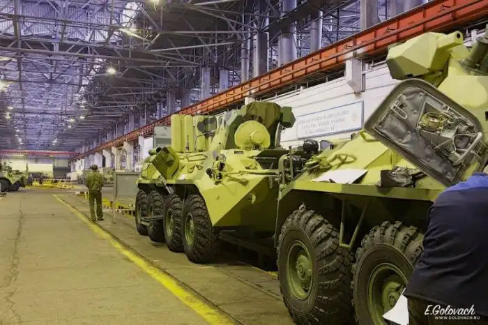 Дальше машины идут на установку того, что заказано. Обсуждается даже материал обшивки внутри (Роллс-Ройс отдыхает). Вообще, у БТРа и так полно модификаций: плавающий и не плавающий, машина связи, командно-штабная машина (вместо башни, сделан «горбик» над десантным отсеком) и много чего ещё, что закажет клиент. Есть даже пикап.
