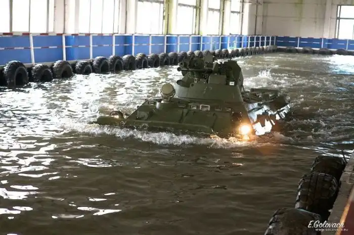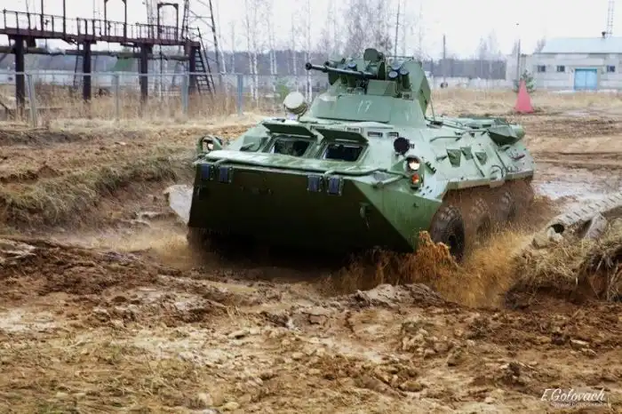 Погрузившись в ожидающий нас микроавтобус, мы выдвинулись в сторону полигона. Туда же отправился и искупанный БТР. Полигон находится на территории завода. Не велик размерами. Стандартный набор препятствий, который стандартно и «круто» проходит испытуемая техника. Что, собственно, и происходило.