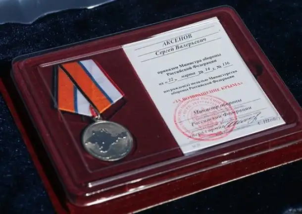 "За Крым!", теперь это не только тост, но и официальная медаль Министерства обороны Российской Федерации. Вернее, медаль называется "За возвращение Крыма". Первые такие медали в торжественной обстановке вручил министр обороны РФ Сергей Шойгу. Среди первых награжденных Сергей Аксенов, премьер Крыма, а так же бывшие "Беркуты", морские пехотинцы из России, командование флотом России.