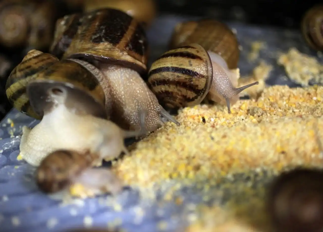 Садовых улиток (Helix Aspersa) кормят кукурузной крупой на ферме в Чоачи, Колумбия, 3 мая 2013 года. Фото: REUTERS/Jose Miguel Gomez