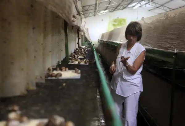 Мариела Рей демонстрирует садовых улиток (Helix Aspersa) на своей улиточной ферме в Чоачи, Колумбия, 3 мая 2013 года. Фото: REUTERS/Jose Miguel Gomez
