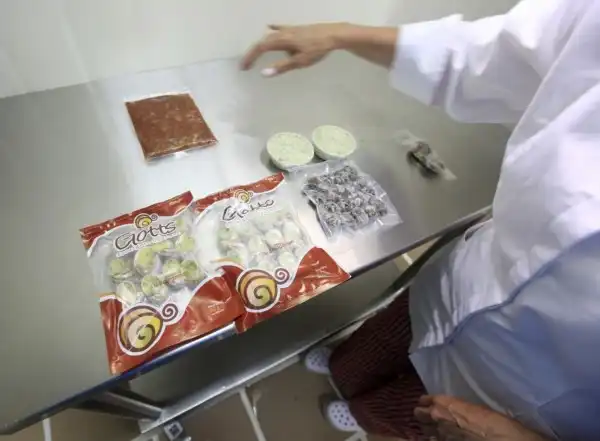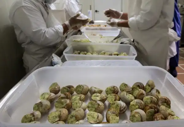 Мясо приготовленных садовых улиток (Helix Aspersa) помещают обратно в раковины и упаковывают в пакеты на ферме в Чоачи, Колумбия, 3 мая 2013 года. Фото: REUTERS/Jose Miguel Gomez