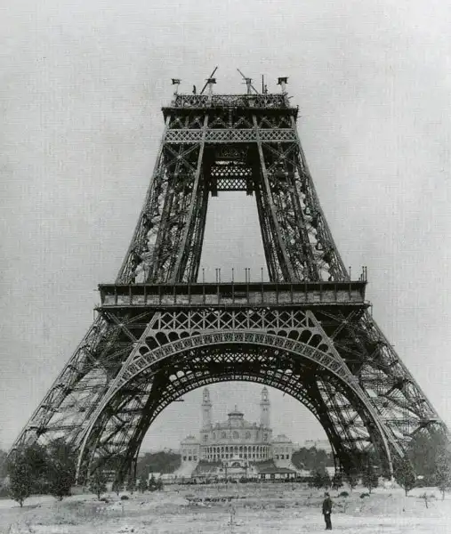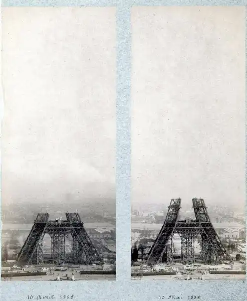 300 рабочих в течение двух лет, двух месяцев и пяти дней выполняли строительные работы. Рекордным срокам возведения способствовали чертежи чрезвычайно высокого качества с указанием точных размеров. И уже 31 марта 1889 года, меньше чем через26 месяцев после начала рытья котлованов, Эйфель пригласил нескольких более-менее физически выносливых чиновников к первому подъему на 1 710 ступеней!