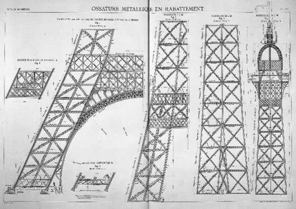 Все компоненты башни изготавливались на заводе Эйфеля в Леваллуа-Перре вблизи Парижа. Каждую из 18 000 деталей рассчитали и расчертили с точностью до десятой доли миллиметра.