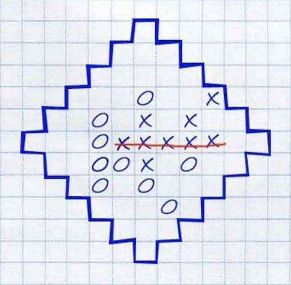 Игра для двух человек - для тебя и соседа по парте. Задача - окружить точками своего цвета точки противника. Соперники по очереди ставят точки на пересечении линий листа в клетку, каждый своим цветом. При создании непрерывной (по вертикали, горизонтали, диагонали) замкнутой линии образуется область. Если внутри неё есть точки противника (при этом могут быть пункты, не занятые чьими-либо точками), то это считается областью окружения, в которую далее запрещено ставить точку любому из игроков. Если точек соперника нет, то область свободная и в неё можно ставить точки.
