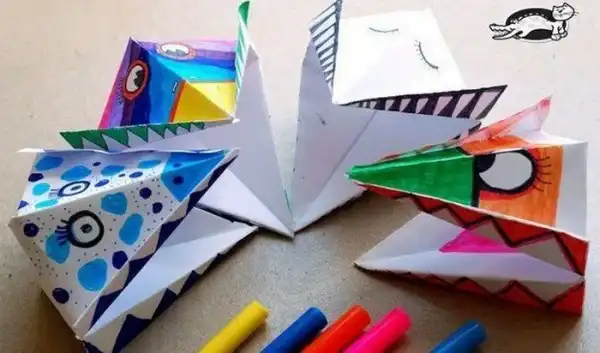 В каждую складку вкладывался фантик от конфеты или жвачки, вырезки из журналов и открыток. Страницы расписывались узорами и нумеровались. На перемене девочки подходили к мальчикам и просили назвать число наугад. По названному числу открывалась нужная страница, складка открывалась, читалось написанное там предсказание или отдавался фантик, если он там был. Между собой девочки играли в "угадайку", меняясь таким образом содержимым "гадалок".