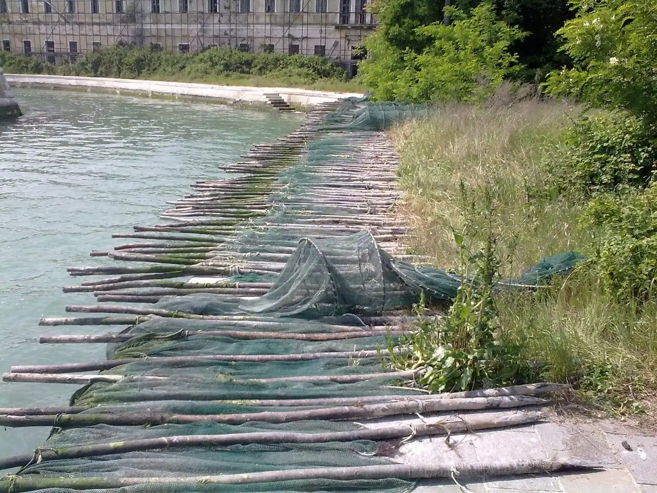 Дом был заброшен в 1968 году, с того времени остров Повеглия пустует. Двадцать лет назад, чтобы не допустить полного разрушения, строительная бригада наспех возвела леса, да так и оставила их, что добавляет и без того мрачному виду еще большей выразительности. Кстати, посмотрите на фотографию ниже, если уж рыбаки так боятся этого места, то кто ставит здесь сети, равномерно разложенные вдоль бетонной стены?