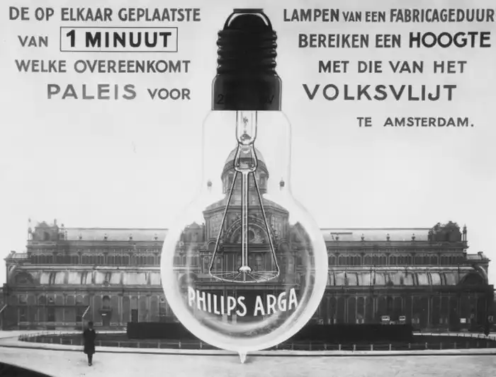 Свой бизнес компания Philips начала с производства ламп накаливания, которые в начале XX века были скорее модной технической новинкой, нежели повседневным бытовым прибором. В 1913 году началось производство лампы Halfwatt, ее отличала спираль из вольфрама и использование газа внутри колбы. Однако массовой она не стала, и через два года компания выпустила ее более популярный уменьшенный вариант - лампу Arga. Такое название она получила за счет использования в ней инертного газа аргон, уменьшавшего скорость испарения металлический нити.