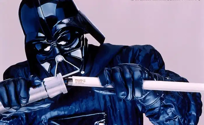 В будущем совершенствование приборов освещения продолжилось, появились уже хорошо знакомые нам люминесцентные лампы, а производители соревновались в их экономичности, экологичности и так далее. А Philips помимо своих разработок уже в конце XX века порадовала вот такой рекламой.
