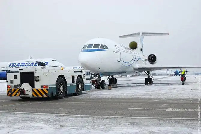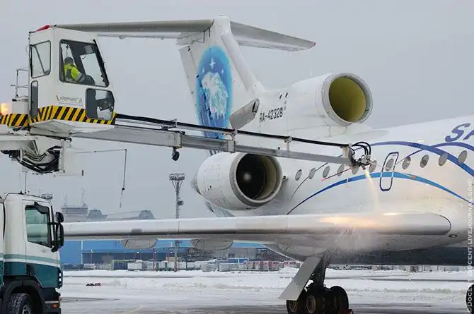 Вот стоит Як42Д, сейчас деайсеры начнут обработку.