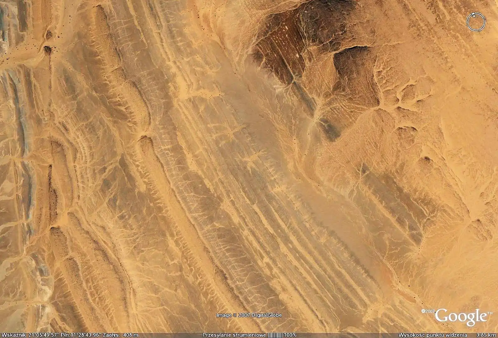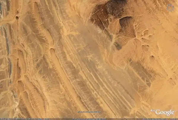 Правда, это чудо природы на самом деле совсем не детская игрушка. Диаметр её внешнего кольца равен пятидесяти километрам, да и на пирамиду оно при более близком рассмотрении совсем не похожа. Находясь непосредственно на этом месте и созерцая каменистую пустыню с чередой различных низменностей и возвышенностей, даже и ни скажешь, что оно может выглядеть столь впечатляюще из космоса.
