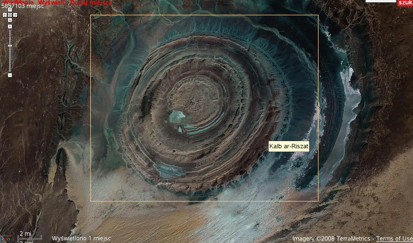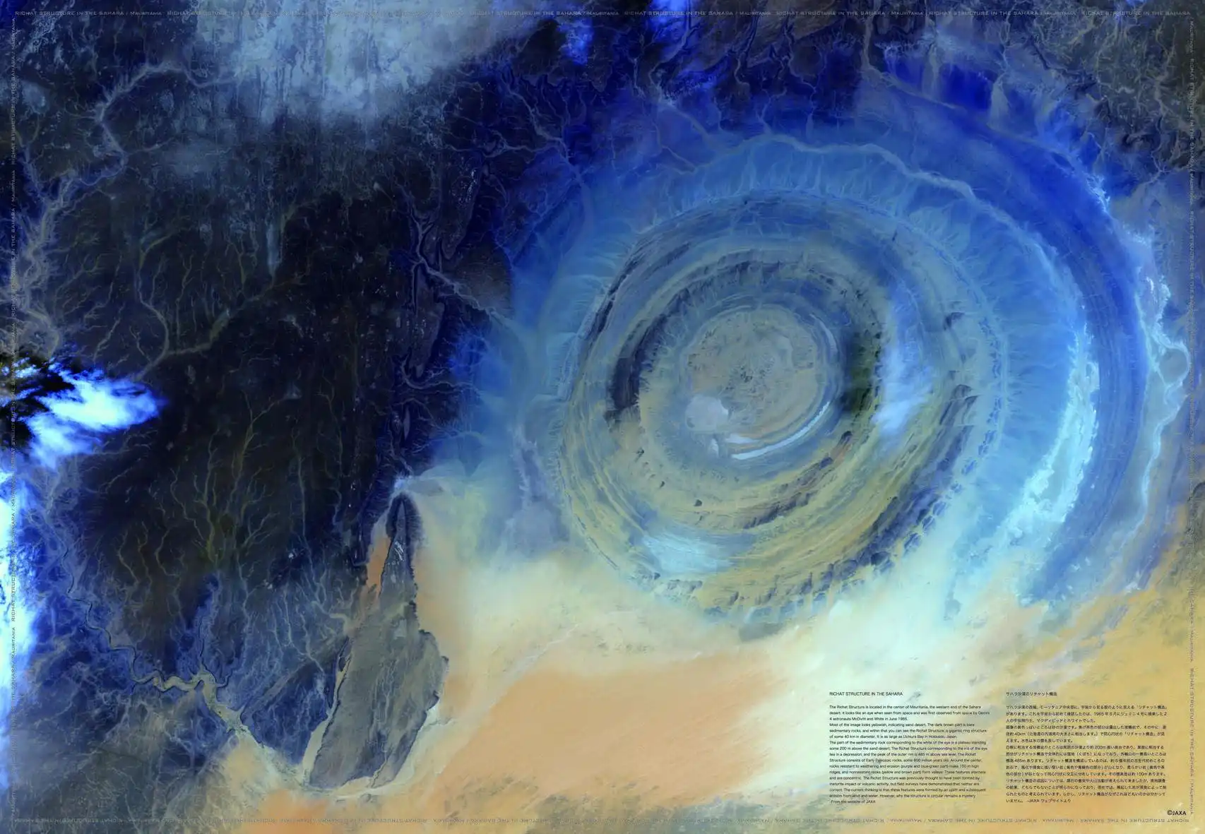 Одной из таких загадок стало для учёных удивительное мавританское почвенное образование, отлично видимое из космоса. Из-за своих больших размеров и чётких очертаний, которые придают ему обширные и безжизненные пейзажи сахарской пустыни, оно уже полвека служит людям, бороздящим бескрайний океан космоса, своеобразным маяком.