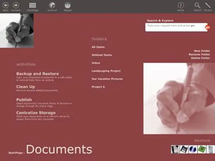 Идею стартовой страницы развивала система «центров активности» (activity center), которую планировалось внедрить в новую систему. Каждый такой центр описывал определённую тематику: «Фото», «Музыка», «Коммуникация», «Игры» и «Помощь и поддержка».