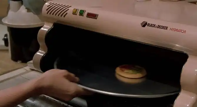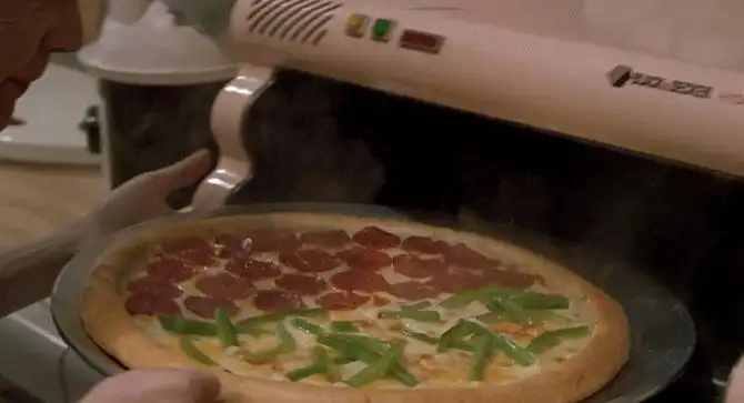 Засовываешь в него крошечный кружочек как бы пиццы и достаешь большую и дымящуюся.