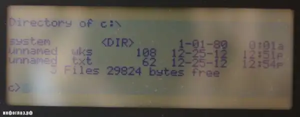 Из 128 килобайт оперативной памяти Portfolio 32 килобайта были доступны пользователю как диск С, а на оставшихся 96 килобайтах размещались встроенные программы: