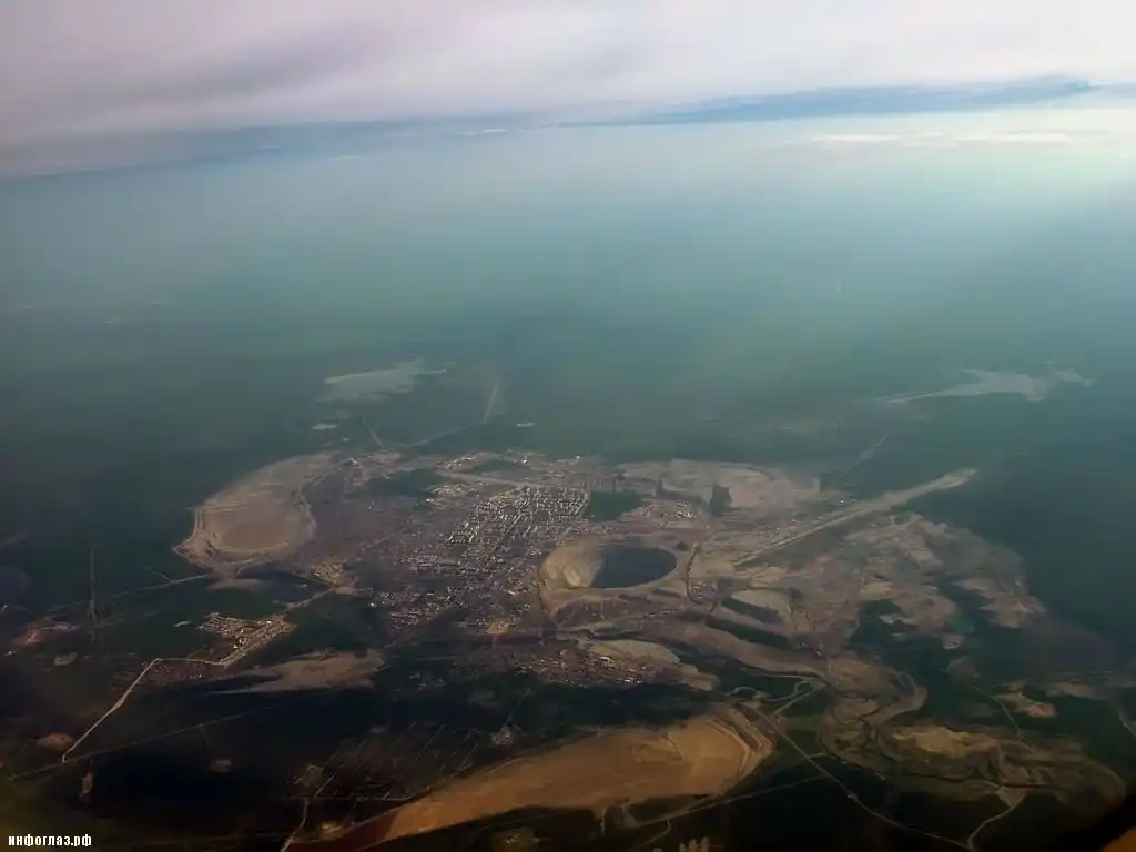 Не менее впечатляюще выглядит кимберлитовая трубка алмазного карьера «Мир», рядом с которым вырос город Мирный: глубина — 525 м, верхний диаметр 1200 — 1100 м, нижний 50 — 210 м. На глубину залегания алмазной руды в 1, 2 км ведет спиральный съезд длиной в 7,5 км. После закрытия карьера 1 мая 2001 года добыча продолжается шахтным методом.