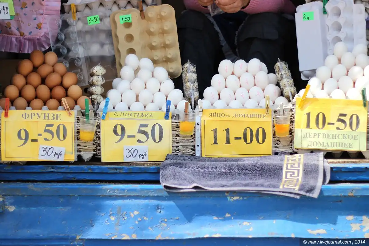 С мясом сложнее. Ценники они никогда не ставят, но зато с продавцами всегда можно поторговаться. Ценовой диапазон за свинину: 40грн (обрезь на котлетки) 55грн (антрекот на кости) 65грн за шею. Выше не нашёл. Говядина: 60-70 за кило. Как правило, если хорошенько поторговаться и взять много, то можно скинуть гривень 5 с кило.