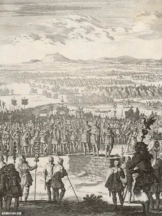 Войска Цезаря после пересечения Рубикона. Фрагмент старинной гравюры.