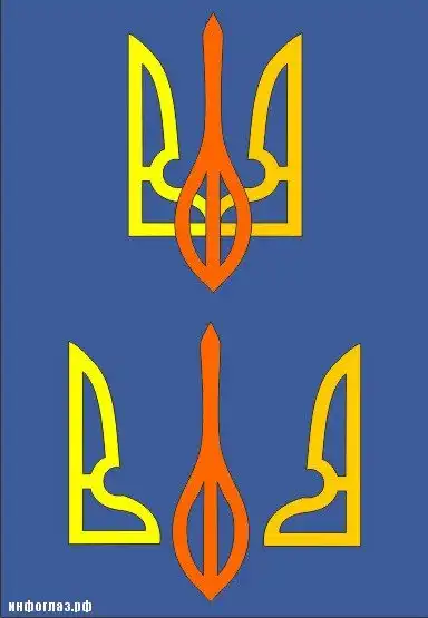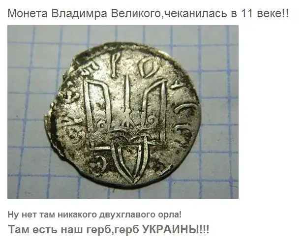 Версия такая: на гербе Украины, как и на гербе Владимира изображена хазарская тамга, которая была в широком использовании в Хазарском каганате.