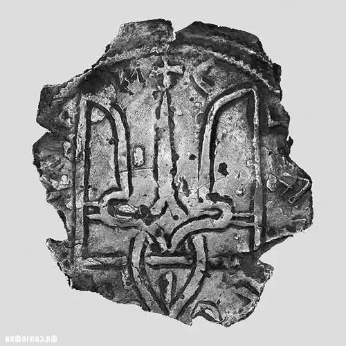Среди «гербов» древнерусских князей встречались и полные аналоги гербов боспорских правителей. Например, личный знак Ярослава Мудрого на поясных бляшках, найденных в Приладожье и в окрестностях Суздаля, практически полностью совпадает с изображённым на поясном наборе из Перещепинского клада Полтавской области, изготовленном в VII век—VIII веке в Среднем Причерноморье. И то, и другое изображение напоминает по форме трезубец.
