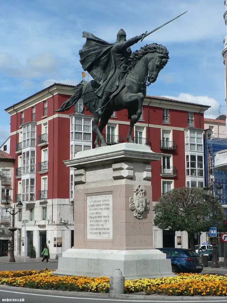 В этом же городе находится основной памятник Сиду, выполненный из бронзы в 1933 г. мастером по имени Хуан Кристобаль Гонсалес. У подножия монумента выгравированы две таблички со следующим текстом: