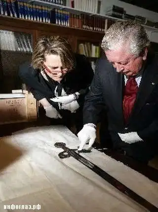Директор музея Бургоса Хуан Карлос Элорса и реставратор Марта Негро осматривают Тисону