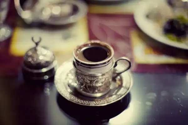 Кофе по-бедуински готовится, как было сказано выше, в течении 15-20 часов на раскаленном песке. За это время вода из кофе медленно выпаривается, и на выходе ты получаешь густую маслянистую жидкость, по цвету и консистенции близкую к нефти, обладающую к тому же невероятно сильным ароматом. Такой кофейный экстракт разливают по нескольку капель на донышки чашек и пьют маленькими глотками, обязательно запивая холодной водой.