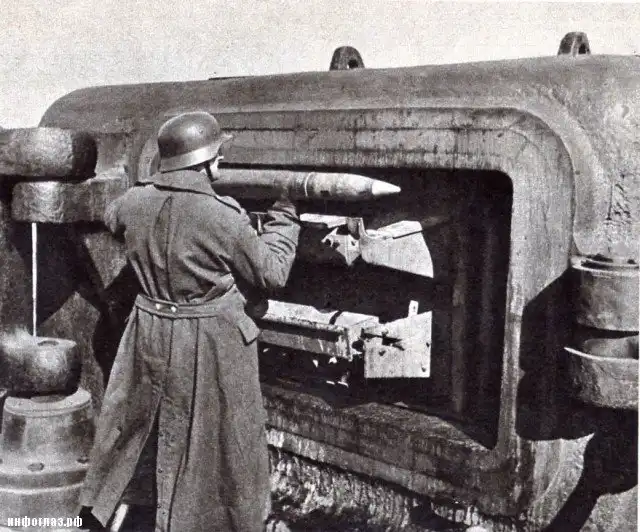 Вот можно поближе посмотреть, как артиллерист берёт снаряд из специального снарядного лифта