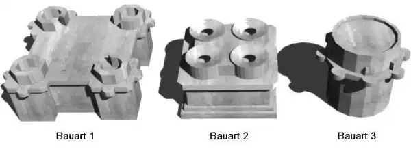 Всего было разработано и осуществлено три проекта зенитных башен (соответственно Bauart 1, Bauart 2 и Bauart 3).